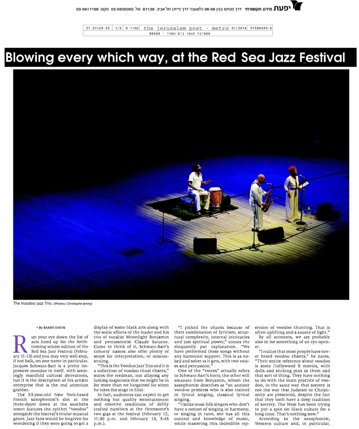 “This is the Voodoo Jazz Trio and itis collection of voodoo ritual chants,” states the reedman, not allaying any lurking suspicions that we might be in for more than we bargained for when he takes the stage in Eilat.